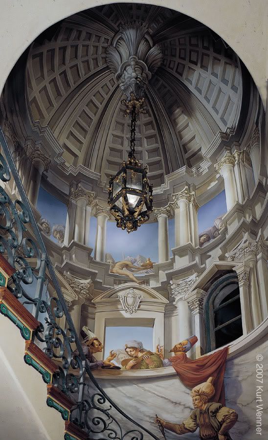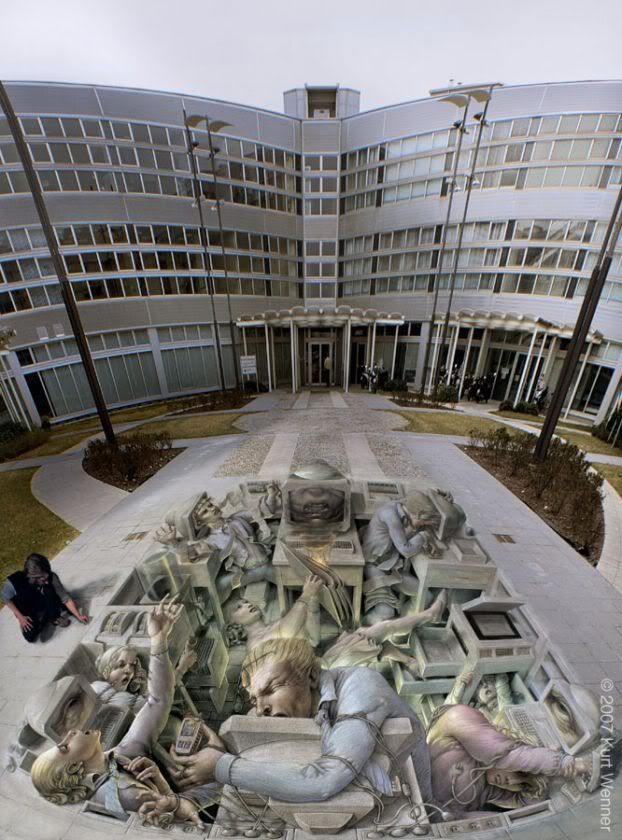 Anamorphic yang menampilkan sebuah tepi tebing yang berbahaya. Lukisan