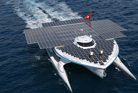 Sumber daya bumi dibidang migas yang semakin lama semakin langka, sehingga para lmuwan terus mencoba menggunakan sumber alternatif. Salah satunya menggunakan tenaga matahari yang tidak pernah habis. Salah satu percobaan dilakukan pada kapal MS Turanur Planet Solar. Kapal ini bertenaga surya terbesar di dunia Switzerlands MS Turanor PlanetSolar tiba untuk berlabuh di North Cove marina, New York, AS, Selasa (18/6). Kapal bertenaga surya ini dirancang oleh LOMOcean dan dibangun oleh Knierim Yachtbau di Kiel, Jerman.